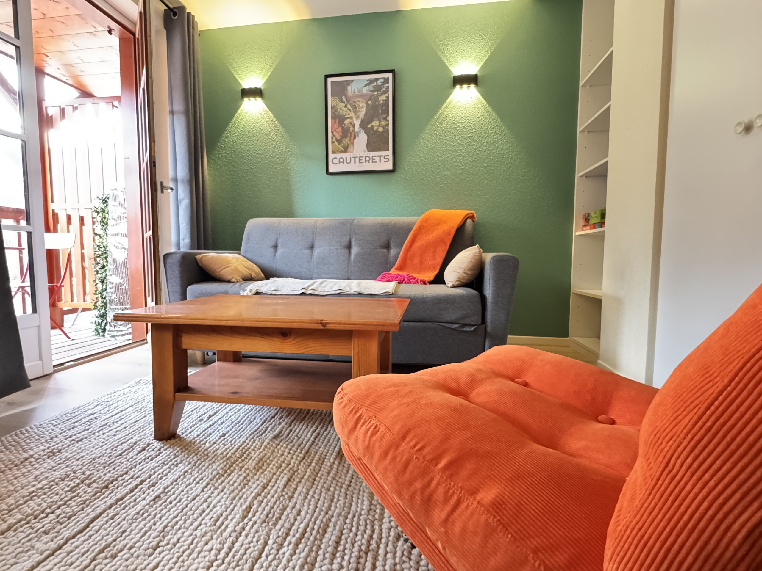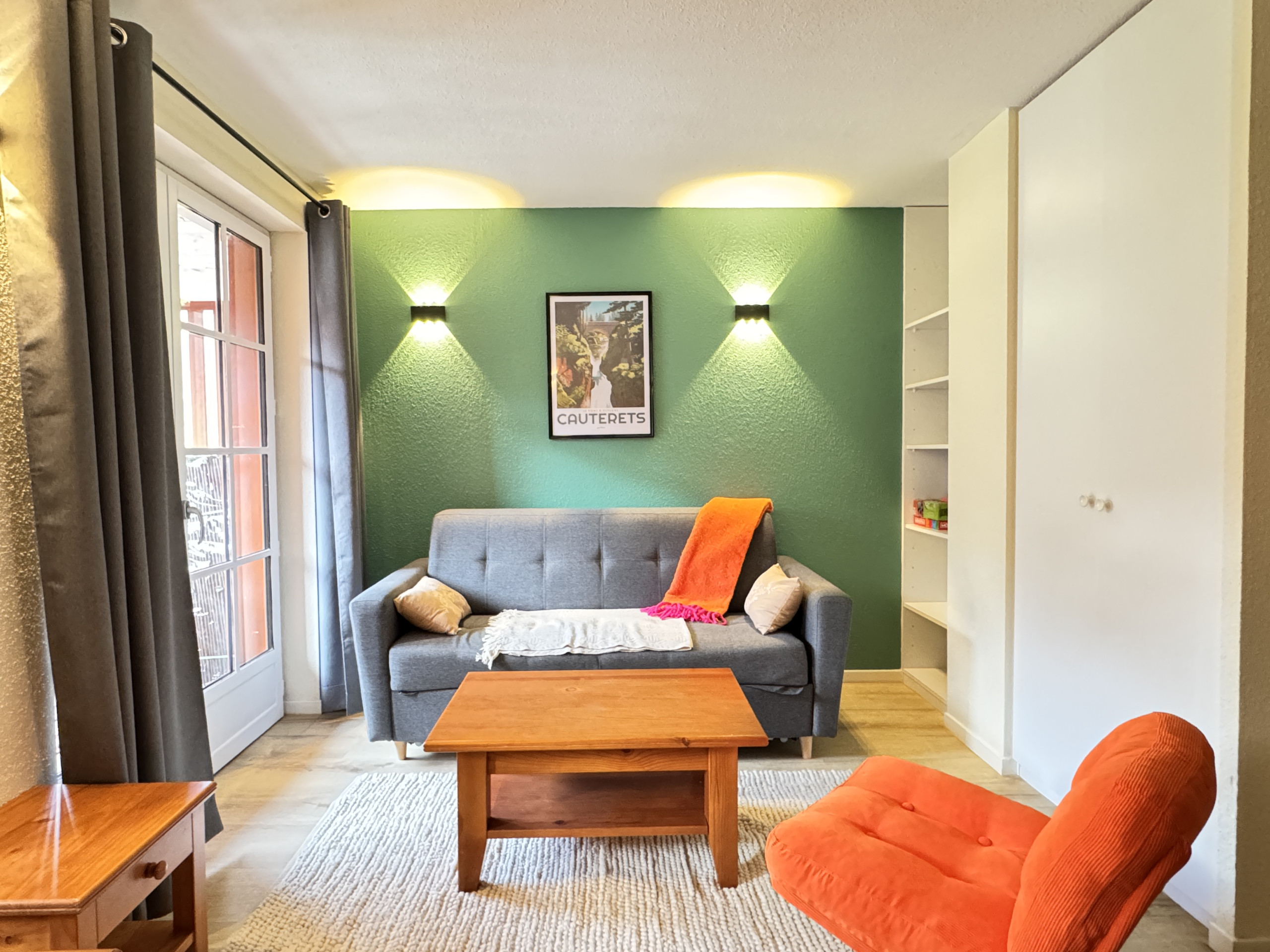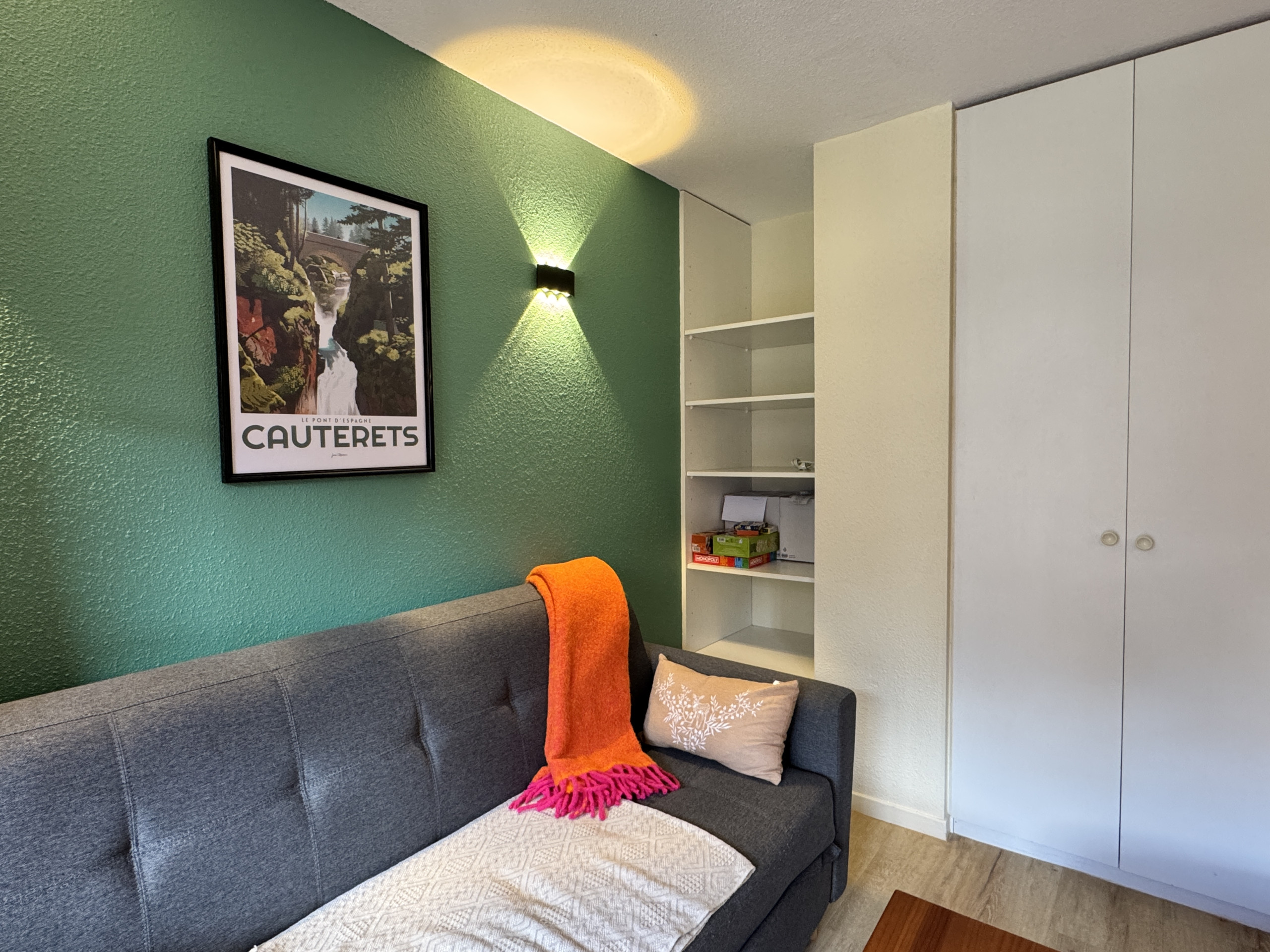 En el centro de Cauterets, en una residencia reciente al pie del telecabina, T2 + alcoba de 38m2 para 4 a 5 personas.