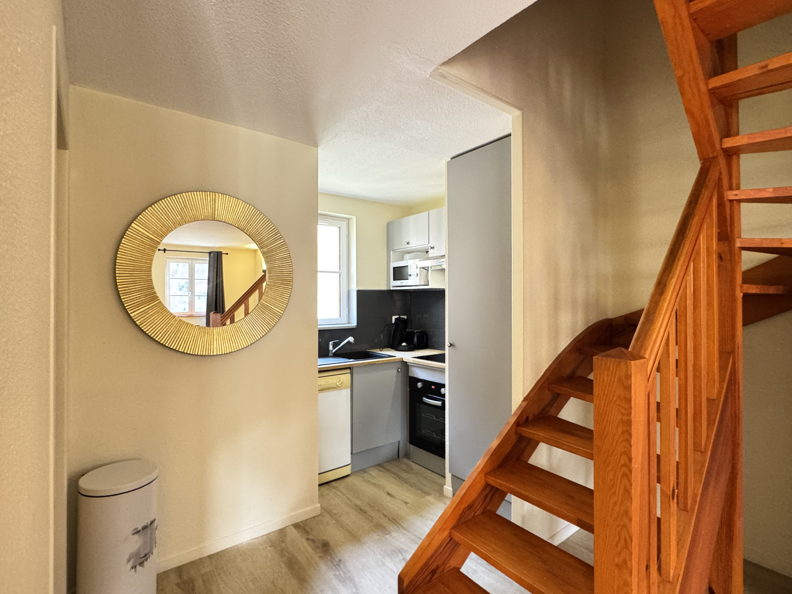 Perfectamente situado en el centro de Cauterets, al pie del teleférico del Lys, en la 3ª planta con ascensor, un apartamento dúplex de 35m2, sencillo y bien equipado para 4 a 5 personas.