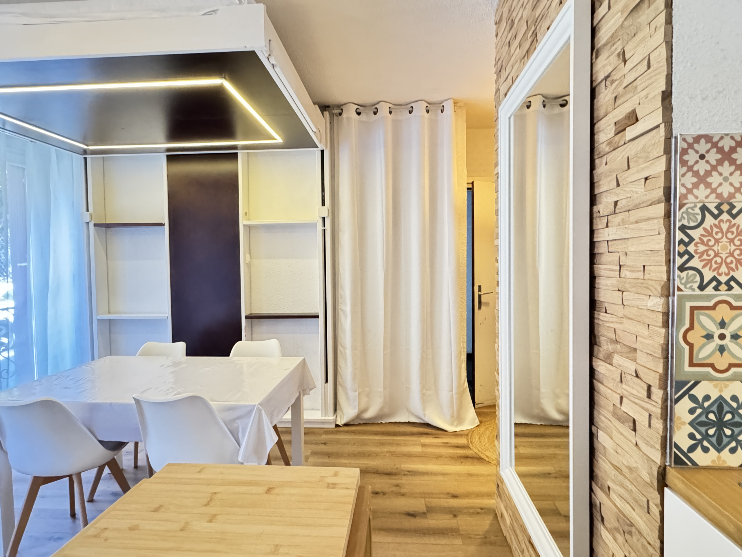studio rénové et bien agencé. Une surface sympa. Une déco soignée. Des poutres apparentes.